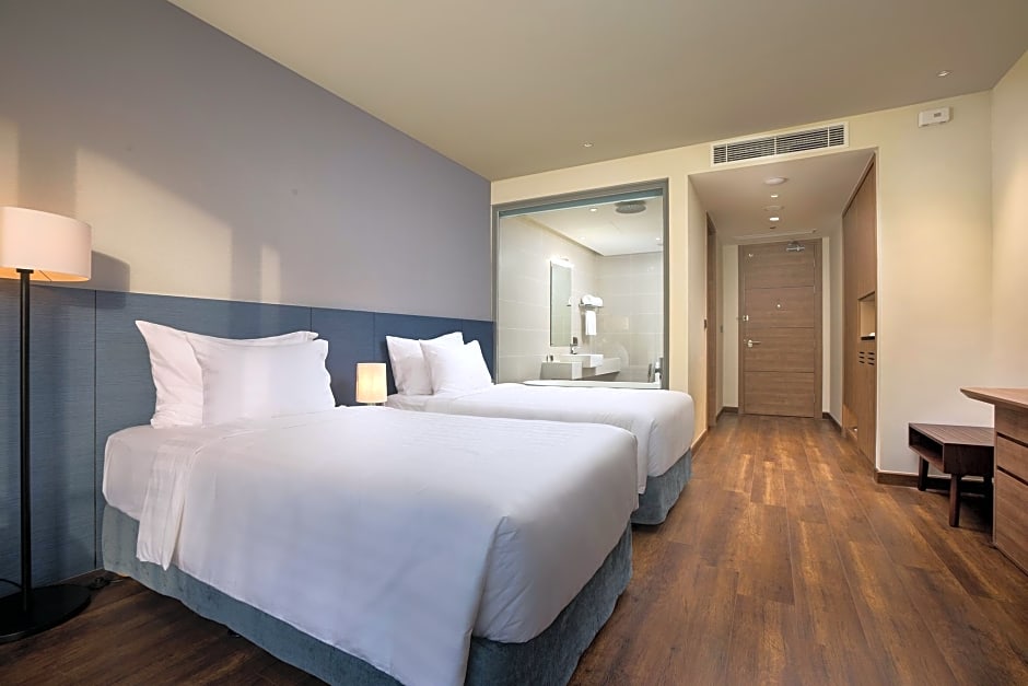 This twin room has a balcony, electric kettle and flat-screen TV.